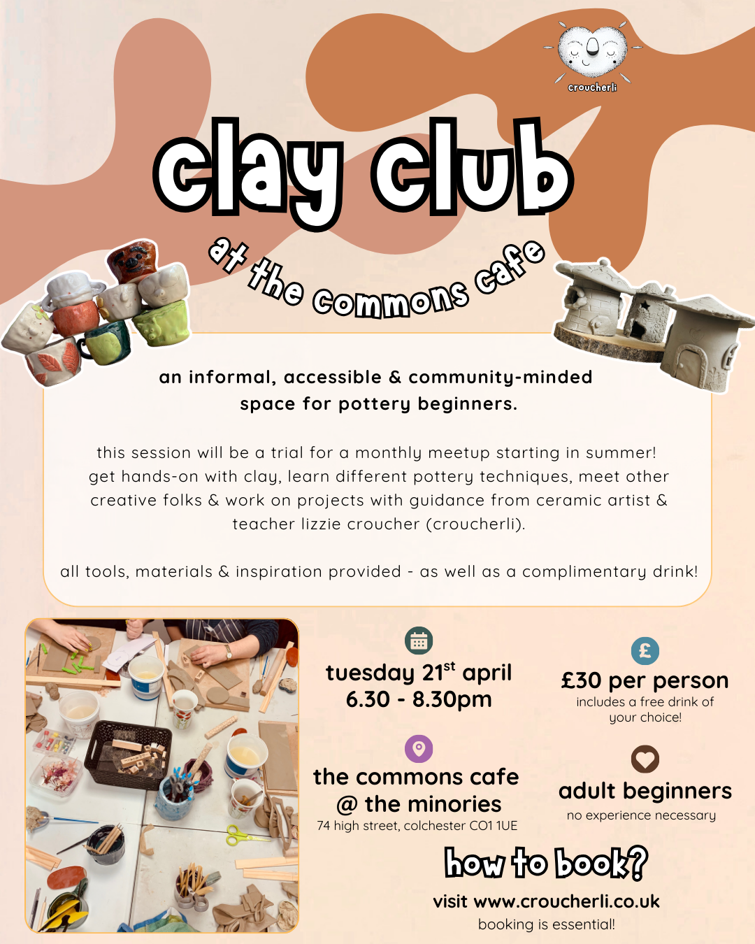 Get hands-on with clay, learn different pottery techniques, meet other creative folks & work on projects with guidance from ceramic artist & teacher lizzie croucher.